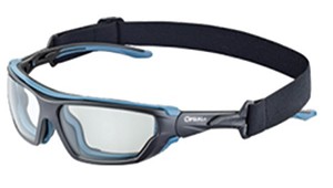 ISO 16321-1 Gafas de protección 2 en 1, incluyen una banda ajustable. Lentes de cobertura total de policarbonato mass-balance 86% de origen biológico y TPE, incoloras o solares