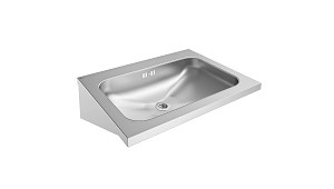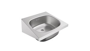 frontal con esquinas 45º, con escuadras de pared soldadas, fijación según EN 31, incluye tornillos y tacos. Dimensiones 400 x 150 x 452 mm (L x A x P). (Lavabos)
