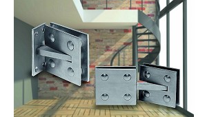 Bisagras con retención para vidrio templado Fabricadas en aleación de latón mediante proceso de estampación Trivel Square - Novograma Innovación, S.L.: Características generales: - Fabricadas en aleación de latón mediante proceso de estampación