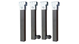 Campo, S.A.que ya está desactivado.: Juego de cuatro patas cuadradas para somier, en hierro, con acabado epoxi color negro. Dos de ellas incorporan ruedas para así facilitar el movimiento. Muy sencillas