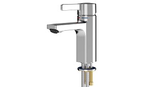 tope de temperatura ajustable y protegido antigiro. Para la conexión al agua caliente y fría. Versión totalmente metálica, en latón cromado y de alto brillo. Aireador con protección antirrobo, forma