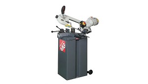 Tronzadoras MG, S.A.: - Sierra de cinta manual para cortes de hierro y acero entre 0º y 60º. - Normas CE. - Monofásica (1 velocidad de corte). - Velocidad de corte: 60 mt/min. - Mordaza