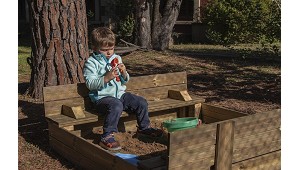 Arenero con cubierta plegable Se transforma en dos bancos para que los niños se puedan sentar Masgames - Masgames Active Toys, S.L.: Práctico arenero con cubierta plegable que se transforma en
