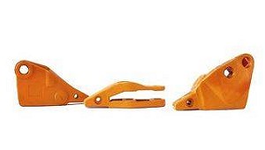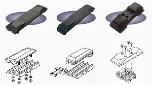 Caterpillar, Komatsu, Hitachi, Fiat-Hitachi, Kubota, International/Dresser, Fiat-Komatsu Takeutchi. - Tejas Bolt-on: sujeción mediante tornillos en la placa base de acero. - Tejas Chain-on: sujeción atornillada directamente en el tramo