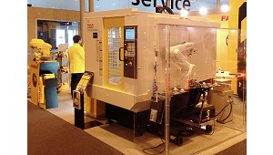 Fanuc Robodrill - FANUC Iberia, S.L.U.: Centro de mecanizado de 5 ejes Fanuc Robodrill con robot LR Mate realizando la carga y descarga automática de piezas en la máquina. Fanuc Robodrill