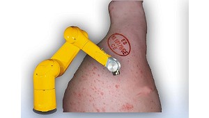 Todo el sistema ha sido diseñado y programado por Timpolot. y utiliza el robot Stäubli TX60. Sistema de autolimpieza de la cinta transportadora. (Robots para salas blancas e industria agroalimentaria)