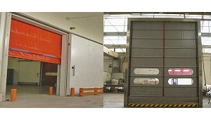 transversales que le confieren la resistencia a las corrientes de aire. Son ideales para industrias agroalimentarias, supermercados, grandes superficies, laboratorios... Sus máximas dimensiones son 4.500 x 4.500 mm. (Puertas rápidas)