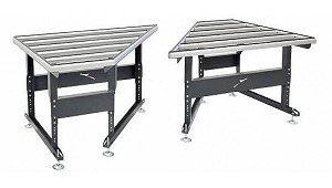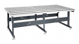 Bancos de trabajo Superficies de contacto en policeno antichoques y antirraya Comall Job 15 - Comall International, S.r.l.: Banco de ensamblaje con plano de trabajo con guías ajustables. Caracteristicas técnicas: - Superficies