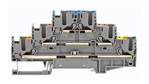 cubiertas por los distintos modelos disponibles: terminales PE, terminales con niveles de conexión verticales para la distribución de potencia y terminales combinados de PE y de paso. (Regletas, terminales, bloques y bornes)