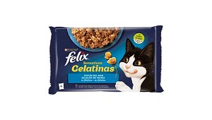 Comida húmeda para gatos adultos Festín del mar en gelatina Purina Felix Sensations - Nestlé España, S.A.: - Alimentación 100% completa y equilibrada. - Vitaminas D&E. - Fuente de Ácidos grasos Omega 6. - Comida