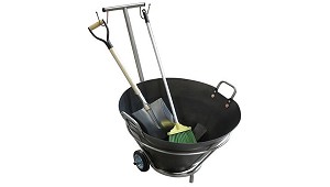 estampado zincadas. Diámetro máximo (superior): 73 cm. Diámetro mínimo (inferior): 34 cm. Altura: 42 cm. Capacidad máxima (sin cerrar asas): 100 l. Material asas: metal / cuero de piel vacuna curtido