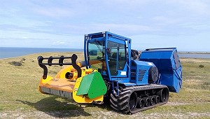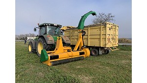 Exportando los restos a un remolque o contenedor, en una sola pasada, y a la velocidad habitual, es capaz de cortar y lanzar la hierba y matorrales a un contenedor