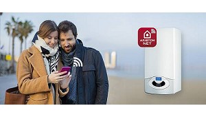 gestor del sistema que permite maximizar la eficiencia de la instalación y un “dispositivo de enlace” (Wi-fi) que permite a las calderas Ariston dialogar con el teléfono móvil enviando