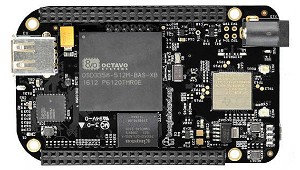 host USB 2.0, la botones de encendido y reinicio, además de otros dos LED de estado para Wi-Fi y Bluetooth. El procesador principal es un Sitara AM335x de TI a 1 GHz, que integra