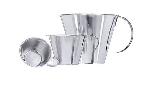 Jarras de acero inoxidable Doble graduado - Plásticos Detectables, S.L.: Jarra fabricada en acero inoxidable 304 (18/10), graduada en el interior y exterior, acabado espejo pulido. Referencias: PDS2113: altura; 10 cm, diámetro