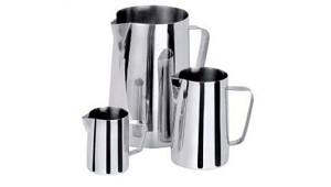 Jarra de acero inoxidable Con base reforzada - Plásticos Detectables, S.L.: Jarra fabricada en acero inoxidable 304 (18/10), graduada en el interior, acabado espejo pulido. Ref. Altura Peso Capacidad PDS2105 11 cm 155 gr 0,5 L PDS2106