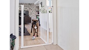 Marketing, S.A.: - Para perros pequeños y mediano - Se adapta a casi cualquier hogar y ángulo - Se abre en ambos sentidos y fácil de abrir con una sola mano - Extensiones adicionales