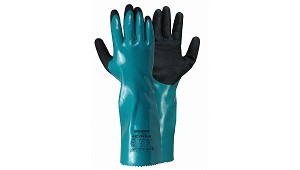 antiácido para protección frente a riesgos químicos, mecánicos y trabajos en situaciones con riesgo de ácidos, bases, petróleos y derivados. Guante adecuado para uso con trajes químicos. (Guantes de seguridad)