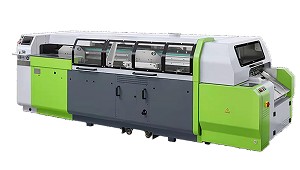rústica y realizar los bloques de libro listos para ser encuadernados. A través del sistema de programación es posible regular la longitud de la gasa, según lo largo del lomo