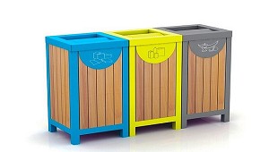 rústicos Melia - Representaciones Martín Mena, S.L.: Papelera de madera gran capacidad "Melia". Disponible en varios colores estándar de madera. Ideal para islas de recogida selectiva para entornos rurales o rústicos