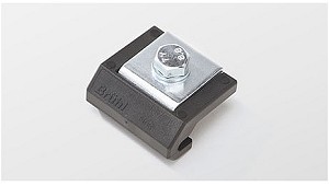 vallado de protección perimetral Brühl Flex II - Seis Maquinaria: Soporte sujeción rejas FlexII, terminal de plástico, placa angular y tornillo hexagonal cautivo en acero galvanizado. (Cerramientos para máquinas y talleres)