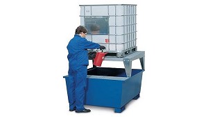 para horquillas Superficie de almacenamiento: rejilla de acero galvanizado Volumen de retención: 1.000 l Dimensiones externas: 1.350 x 1.650 x 1.180 mm Equipamiento: con soporte de llenado (Tanques y cubas)