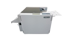 tarjetas, postales, portadas de libros, fotografías, tarjetas de PVC, etc. Cuenta con un ancho de trabajo de 330 mm, una velocidad de 2 metros/minuto y un espesor de documento desde