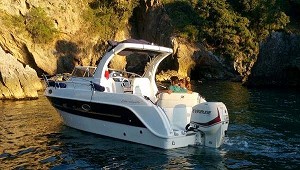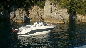 bitas en Inox. - 3 ganchos de remolque. - Luces de navegación. - Cojines completos. - Bomba de sentina. - Cuadro de relojes con interruptores . - 2 portaobjetos laterales en madera. - Escalera de baño. Equipamiento opcional