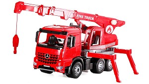 Grua Mercedes Benz Arocs Lena Toys 02175EC - Dream Toys: Grua Giga Trucks brigada de incendios Mercedes Benz Arocs con pluma telescópica 150cm +3 (Vehículos de juguete de tamaño reducido)