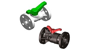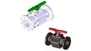 Bore. Maneta de color identificando los sellos (roja= EPDM, verde= FPM, azul= FEP/FFPM). Superfícies interiores que favorecen el flujo y limitan las zonas de retención. Juntas moldeadas en las bridas
