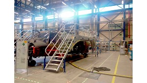 antenas. Las dos plataformas traseras permiten a los operarios trabajar en todo lo largo de la cola así como en el rotor de cola. (Entidades y asociaciones sectoriales de Aeronáutica)
