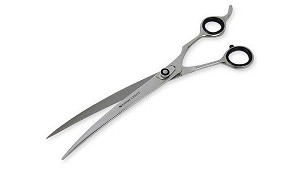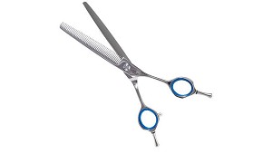 dedos · Diámetro de los agujeros para los dedos: 2,3 cm (simétricos) · Acero inoxidable mate de gran calidad · Peso: 38 gr. (Tijeras de corte y de dientes para peluquería canina