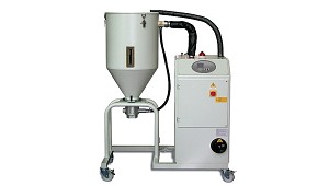 versión CRD, tanto la tolva como el dryer son montados en un marco por una solución compacta y móvil. Puntos clave: - Sistema compacto. - Móvil. - Aplicaciones de tolva única. (Deshumidificadores para plásticos)
