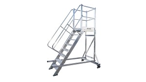 escalera: 1 m. Altura del rodapiés de la escalera: 1 m. Dimensiones de la plataforma con voladizo de la escalera: variable. Sobresaliente del voladizo de la escalera: variable. (Escaleras móviles