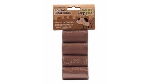 grosor de 15 micras. Presentado en rollos de 15 bolsas, caja expositora de 50 rollos y blíster con 4 rollos. Conservar en lugar fresco y seco. (Bolsas higiénicas para perros)