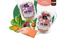 Menú Completo de Cordero con Verduras Frescas. 2,5 kg del Menú Completo de Salmón con Verduras Frescas. Gratis Aceite Natural de Sardina (Alimentación cruda (dieta BARF) para perros y gatos