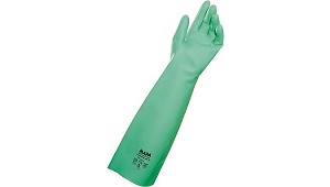 REACH). Detalles del producto: - Material: nitrilo. - Color: verde. - Acabado interior: flocado. - Acabado exterior: textura grabada. - Longitud: 32 mm. - Espesor: 0,38 mm. - Tallas: 6 / 7 / 8 / 9 / 10 / 11. Acondicionamiento