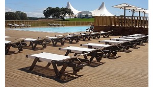 sede) y en Maia. En su amplia cartera destacan las mesas y bancos de jardín, las pasarelas y pavimentos, las tumbonas y las sombrillas, los puentes y las estructuras elevadas