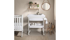 tapizados. Sus ruedas te facilitaran el traslado al lugar que prefieras para el baño del bebé o para cambiarlo de ropita o pañal. Además tiene varias cestas de tela muy prácticas