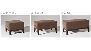 Beverly / Kenia / Nilo - Tapizados Lujosa, S.L.: Características: Esqueleto: Haya Montaje: cintas inderfomables Goma: Poliuretano 25 kg. Pulimento: Fondo PU y acabado nitrocelulósico. Embalaje: Funda de plástico, cartón 100% reciclable (Puffs)