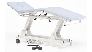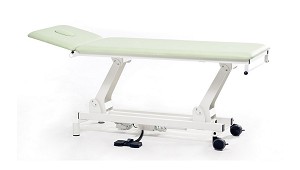 Tapizado de espuma ignífugo y resistente a la luz. - Carga máxima: 170 kg. - Doble actuador eléctrico de 6000N cada uno. - Función tend-antitrendelemburg de hasta 28º, para tratamientos de fisioterapia