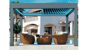 habitable. Puede incluir cerramientos de cristal y zips. Sus lamas tienen una apertura de hasta 75% lo que permite adaptarla a loas necesidades del espacio. (Pérgolas, cenadores y toldos planos)
