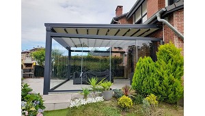 crear cerramientos exteriores, con la posibilidad de cerarr sus laterales con estores, zips, cortinas de cristal, guillotinas de cristal o la combinación de todos ellos. (Pérgolas, cenadores y toldos planos)