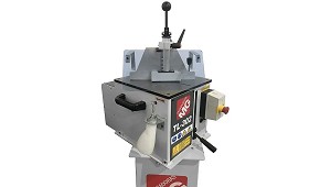 Tronzadora de junquillos De PVC Haffner TC 294 - Haffner Ibérica: Discos especialmente posicionados a 45° para cortar simultáneamente junquillos de PVC. - Utilizando contraformas específicas, se pueden cortar dos junquillos al mismo