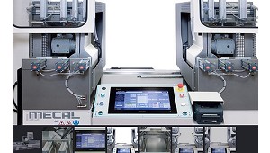Tronzadoras De doble cabezal Mecal SW 453 PLUG - Mecal Ibérica, S.L.: Posicionamiento automático de la unidad móvil. Inclinación neumática de los cabezales (90°, 45° o 22,5°). Los grados intermedios