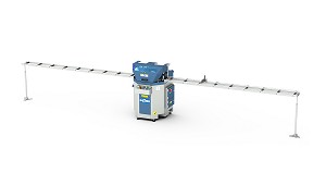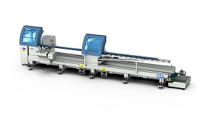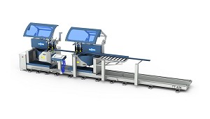 Tronzadoras doble cabezal para aluminio Con movimiento automático del cabezal móvil RS - Voilàp Holding: Tronzadora de doble cabezal de 5 ejes controlados para aluminio, PVC y aleaciones ligeras, con movimiento