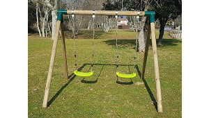 Columpio doble con asiento ovni Con madera tratada para resistir la luz solar Masgames Kibo plus - Masgames Active Toys, S.L.: La madera de los columpios y de los parques infantiles