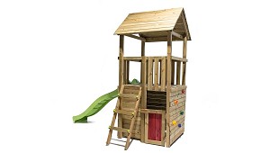 Parque infantil Equipado con rampa de escalada Masgames Canigo L con caseta - Masgames Active Toys, S.L.: Esta es la versión más completa de la torre Canigó porque en la parte