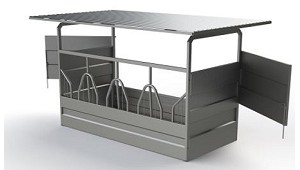 forraje. 7 plazas. Fácil carga por la parte trasera. Barras inclinadas para que los animales desperdicien menos comida. El modelo A030-CT incluye tejado. (Comederos y bebederos para ganado vacuno)
