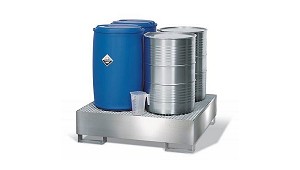alojamiento para horquillas para un transporte seguro - Datos técnicos: Capacidad de almacenamiento para 3 bidones de 200 litros Con hueco para horquillas Superficie de almacenamiento: rejilla en acero fino Color